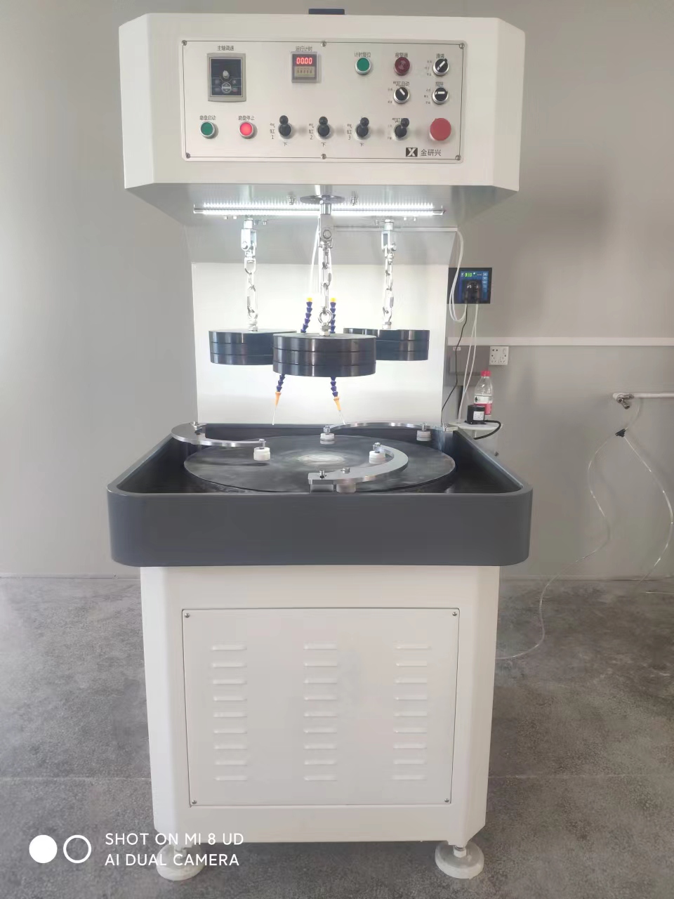 產(chǎn)品描述:高精密研磨機(jī)(帶水冷修面立式研磨機(jī))設(shè)備用途:廣泛用于LED藍(lán)寶石襯底、光學(xué)晶體材料、五金零件、模具、導(dǎo)光板、閥片、液壓密、不銹鋼等各種村料的單面研磨。高精密研磨機(jī)(帶水冷修面立式研磨機(jī))設(shè)備原理: 1.本研磨機(jī)為精密研磨設(shè)備,被研磨產(chǎn)品放置于研磨盤上,研磨盤逆時(shí)鐘旋轉(zhuǎn),工件自己轉(zhuǎn)動(dòng),用重力加壓的方式對工件施壓,工件與研磨盤作相對旋轉(zhuǎn)磨擦,來達(dá)到研磨目的。 2.修盤機(jī)采用油壓懸浮導(dǎo)軌,配合金剛石修